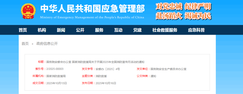 发表时间:2025-11-06 18:58来源:应急管理部网址:https://www.mem.gov.cn/gk/zfxxgkpt/fdzdgknr/202510/t20251016_561542.shtml